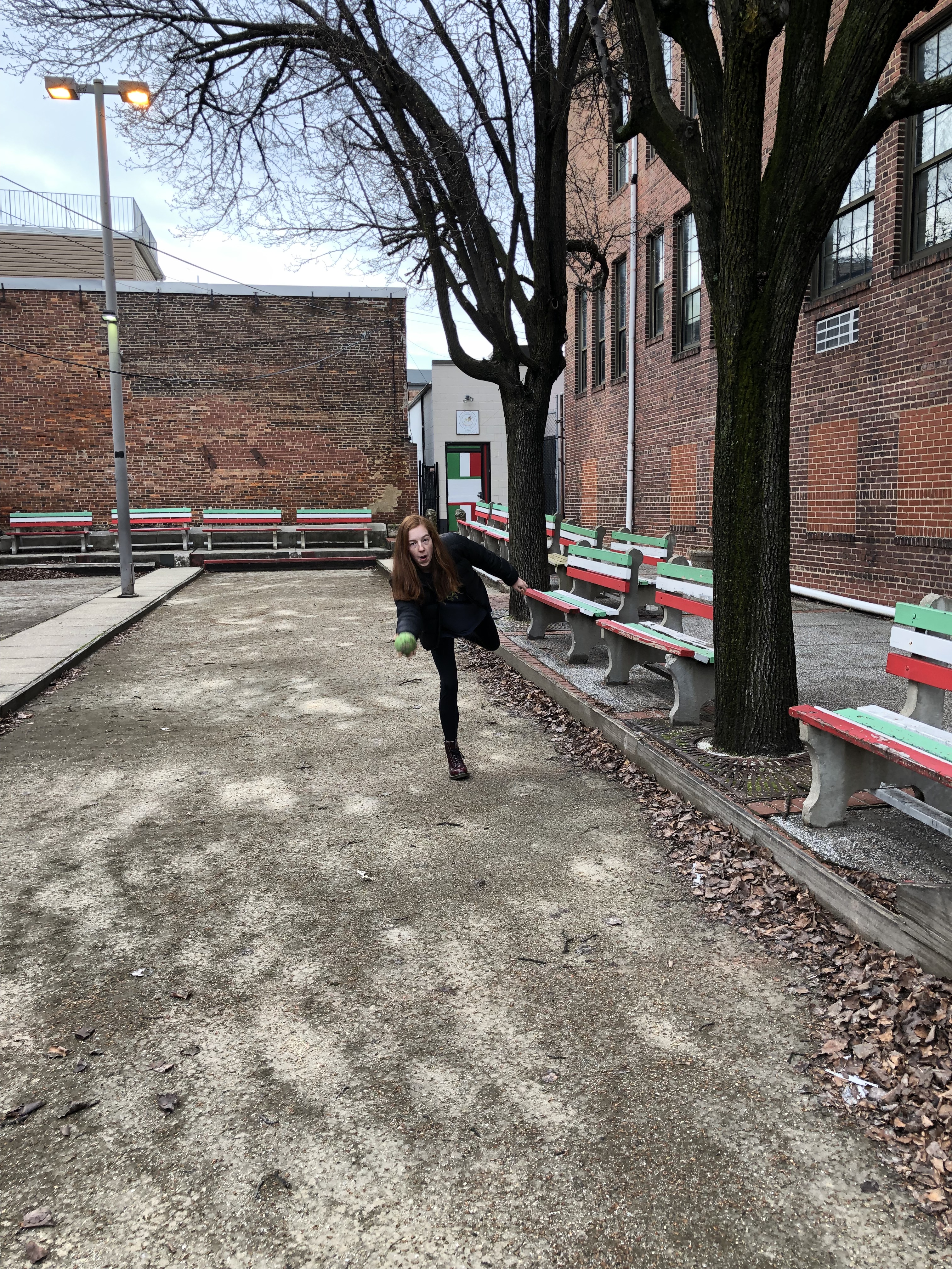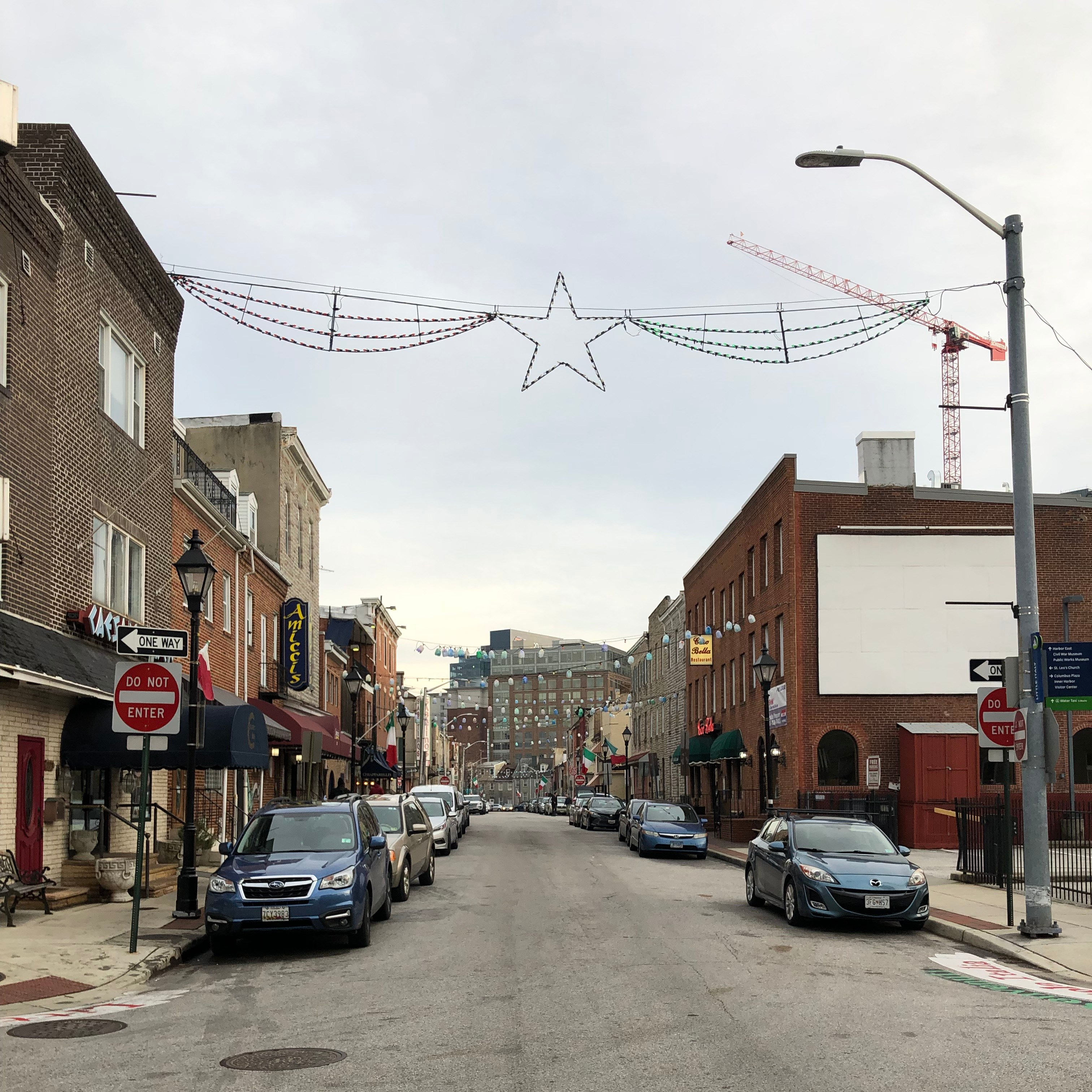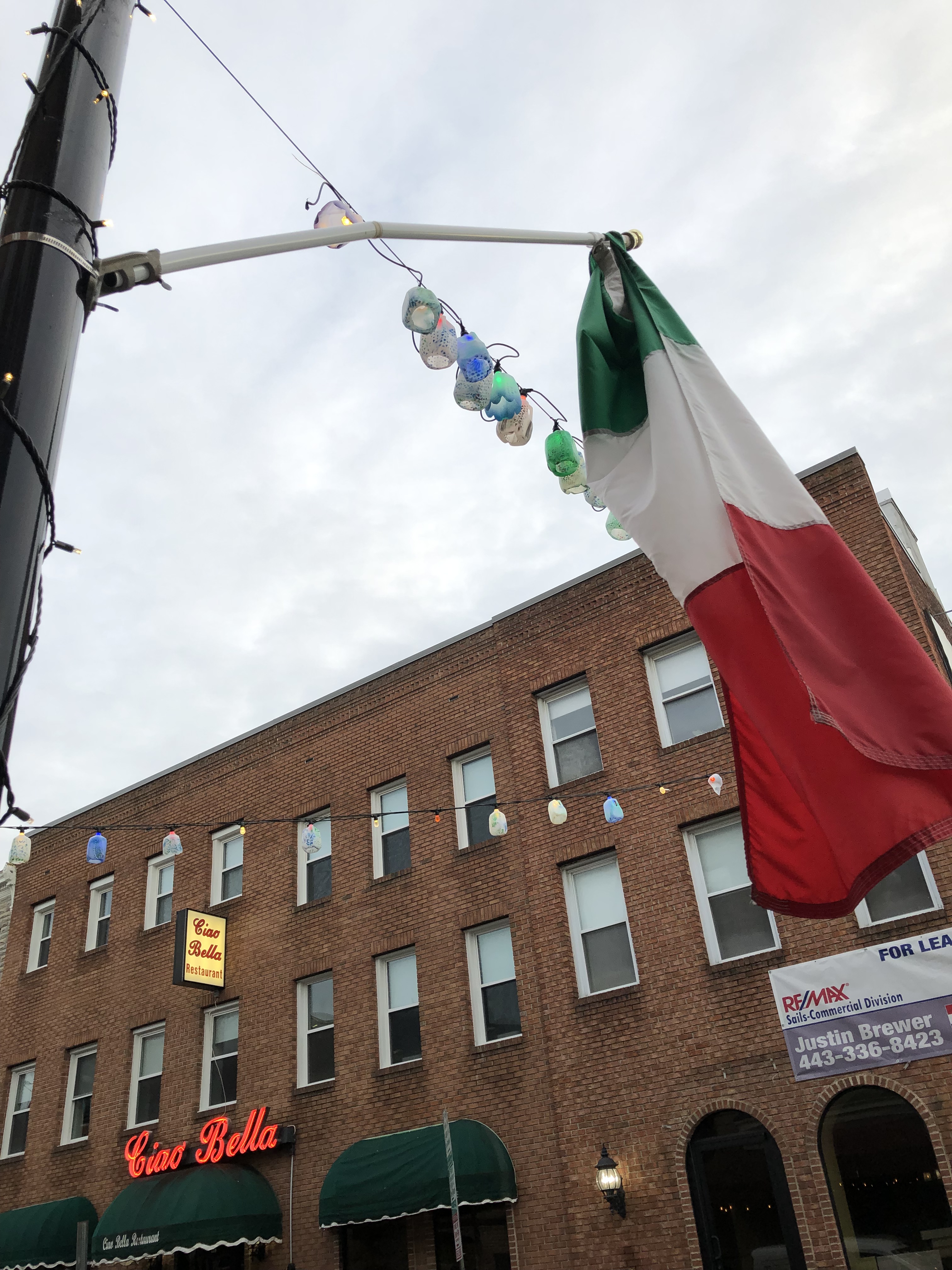 When you first drive into Little Italy you are immersed in a community full of row houses, murals, and restaurant signs. There are flags flying in the breeze, lights strung across the streets, and a feeling of pride and heritage that is never felt in the suburbs where I live. When we got out of the car to start walking around, I saw the beautiful Saint Leo’s Catholic Church, which was wedged right into the neighborhood. I stopped by the neighborhood Bocce Court (which was closed for winter), and I admired all of the murals and Italian flag colored fire hydrants.
