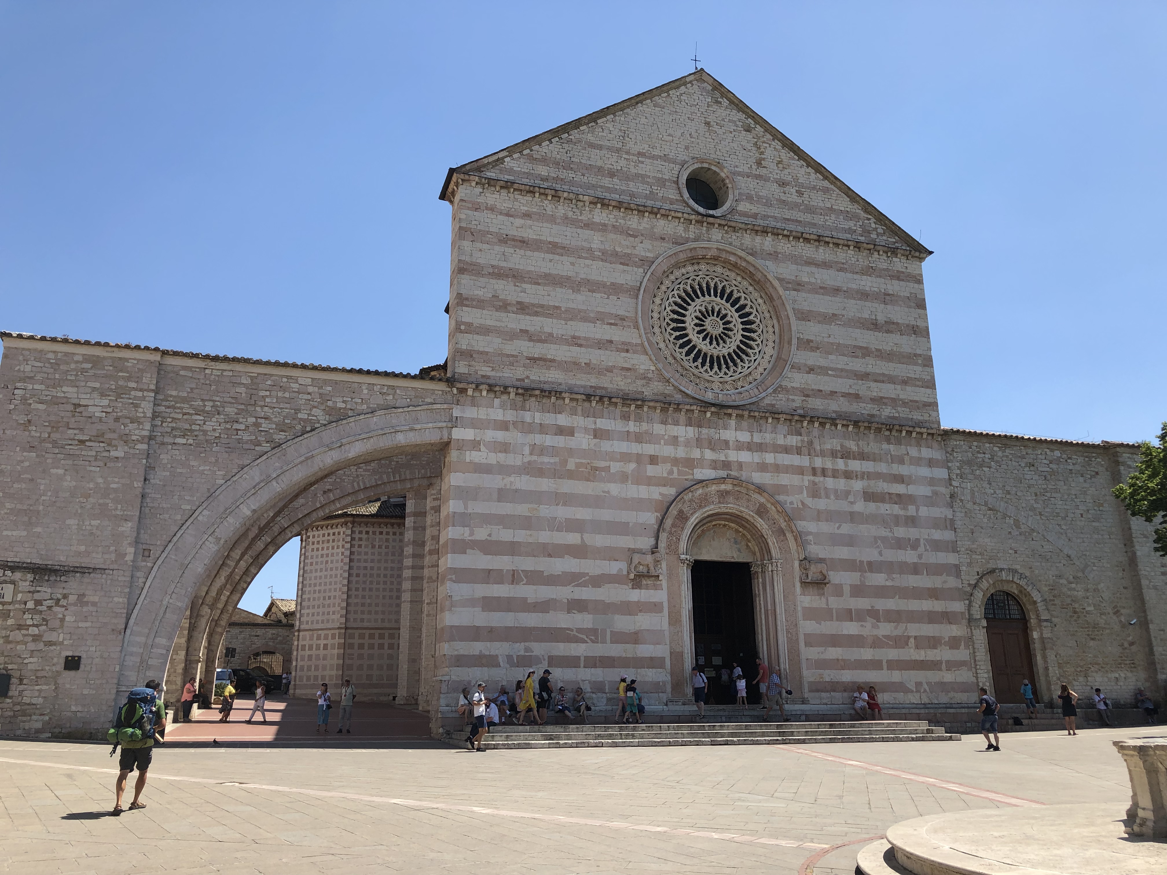 We rode the heatwave from Sansepolcro to Assisi. Our day in Assisi began with a visit to the Basilica of San Francesco. The sun was pounding on us as we marched up the hills to the church. Getting to see the high and low churches, “Giotto’s” frescoes of the Life of Saint Francis, and Saint Francis’ tomb was different than I had expected. I didn’t expect the low church to be as ornate as the high church, and I was surprised at how many tourist groups were there. The church looks larger in photos, and I was expecting the nave to be much longer than it was. My head hurt from arching my neck to view all of the frescoes along the ceilings! The tomb of Saint Francis was very crowded, not the actual tomb, but the room around it. I saw a box entitled “Letters to Francis” where people could write to him like Juliette up in Verona, and that made me cringe. I just wasn’t getting the ~spiritual vibes~ there. It wasn’t until Santa Chiara that I had a spiritual experience.
